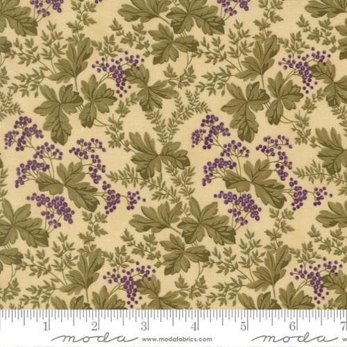Et nydelig stoff i denne serien som har lilla blomster, små bær og blader utover.