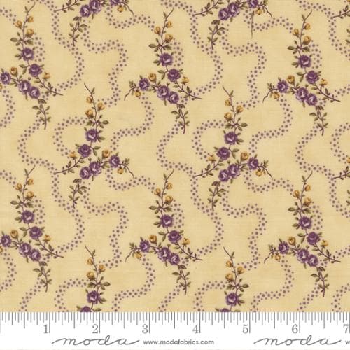 Et nydelig stoff i denne serien som har lilla blomster, små bær og blader utover.