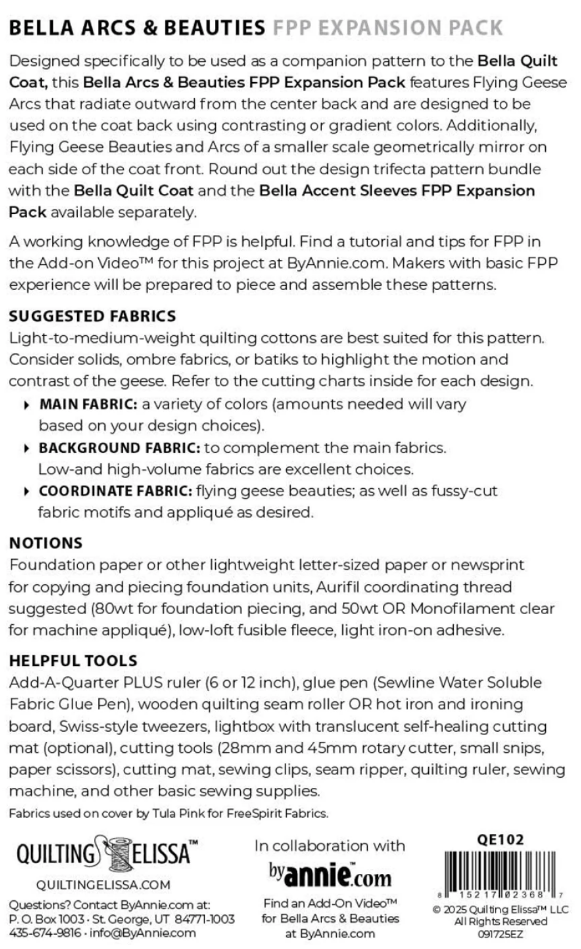 Denne Bella Arcs & Beauties FPP-utvidelsespakken er spesielt utviklet for bruk som et følgemønster til Bella Quilted Coat.
