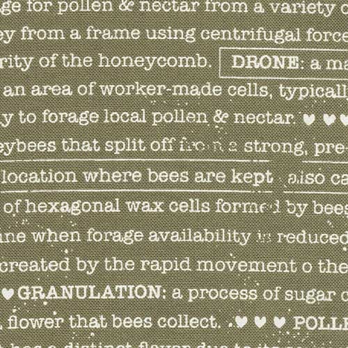 • Eit flott stoff i ein serie med prikker, blomster, bietekst og småbier og blomster. Nevnte eg bier? Serien heiter Wild Honey.