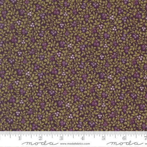 Et nydelig stoff i denne serien som har lilla blomster, små bær og blader utover.