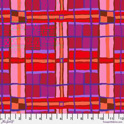 Et herlig stoff med ulike ruter i lilla, rødt, rosa og oransje. Du ser ca 30 * 30 cm av stoffet.