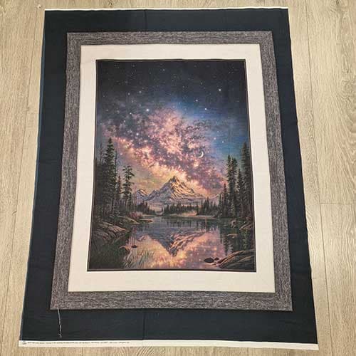 Et flott panel som måler 85 * 110 cm. Nydelig magisk fjell med stjernehimmel over.