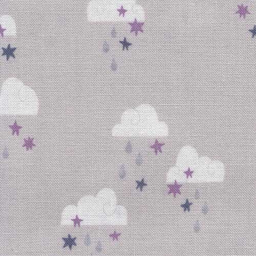 Et søtt stoff med skyer som regner både stjerner og dråper.