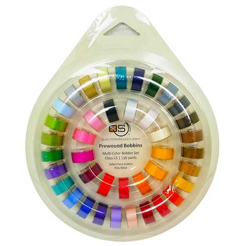 Utvalgt 80wt Para-bomulls-polytråd er den perfekte undertråden. Disse forhåndsviklede spolene har ingen harpiks eller lim som holder tråden til spolen, noe som gir en ren syopplevelse. Det praktiske etuiet har et gjennomsiktig lokk for å holde støv unna spolene samtidig som de er synlige. Hvert spor er merket med trådfargen for å gjøre matchingen enklere.