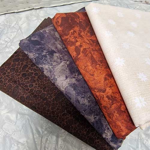 Flott pakke med fire ulike stoffer i brun beige toner.