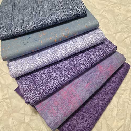 Herlig pakke med seks stoffer, et grunge, et speckled og fire herringbone.
