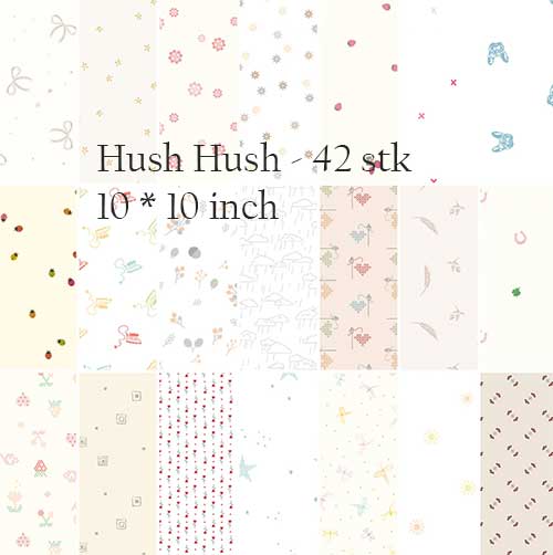 Ein suveren pakke med beighe/hvite stoffer med trykk på.