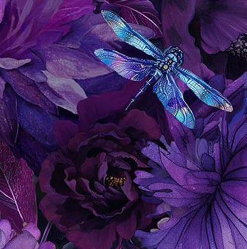 Lilla blomster og øyenstikkere tett i tett
