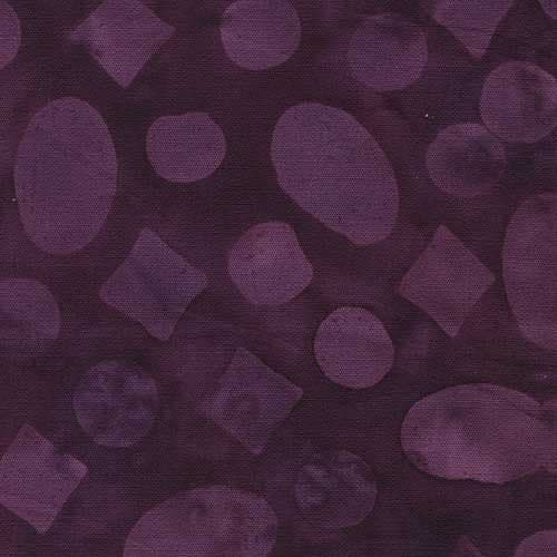 Et flott batikkstoff i serien Garden Gate. Sirkler og diamantformer som skal illustrere grus.