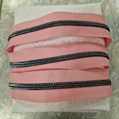 Lys rosa glidelås i metervis mørke fargerike tenner #5