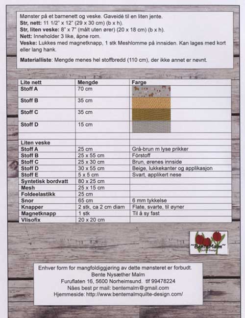 Mønster på flott nett med tre lommer. Klikk under bildet for meir informasjon.