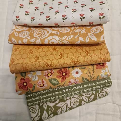 Herlig pakke med de grønne og gule stoffene i denne bieserien.
