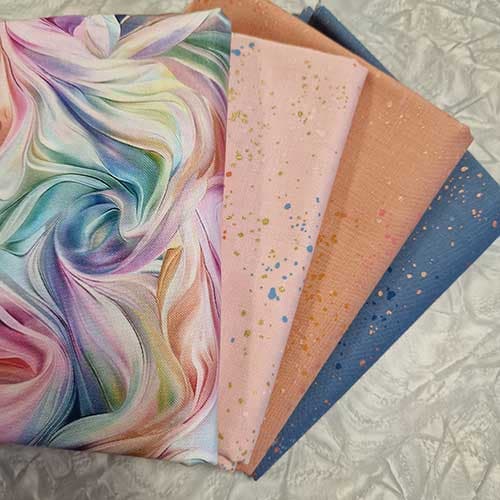 Herlig pakke med det nydelige pastellstoffet og speckled som passer til.