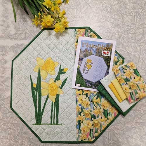 Ein herlig pakke der du får stoffene du trenger til å sy den skjønne brikka. Vatt og bakstykke er ikkje med.