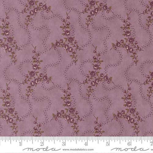 Et nydelig stoff i denne serien som har lilla blomster, små bær og blader utover.