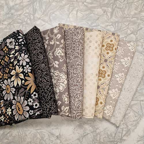 Ein herlig pakke med Posh stoffer og to basistoffer til. Basisstoffene kan variere fra bildet.