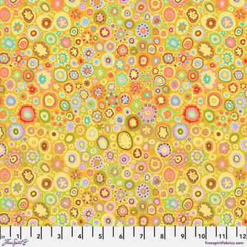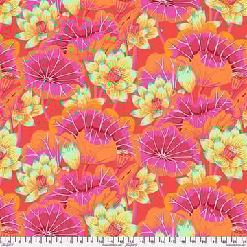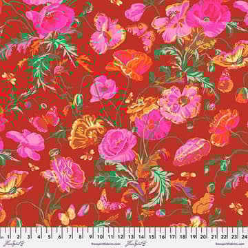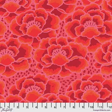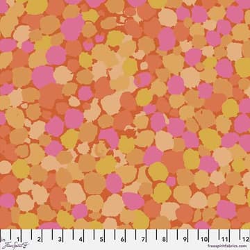 Ein nydelig pakke med stoffer fra rødt til oransje til gult.
