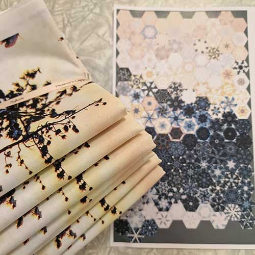 • Et suverent panel å sy One Block Wonder av. Eg spanderer det sjuende panelet. Klikk under bildet for å sjå korleis sekskantane kan bli om du kutter dei 4 inch i stripene.