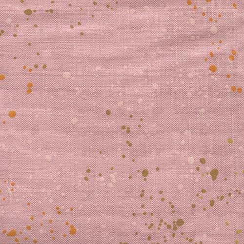 Et fint stoff med flekker i oransje og lyse brune toner.