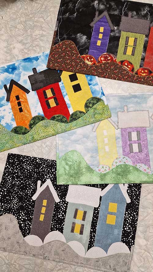 Eit supert utgangspunkt for å sy brikkene Blåtimen, men til de ulike årstidene. Klikk under bildet for å sjå Ann Kristin sine varianter av Blåtimen.