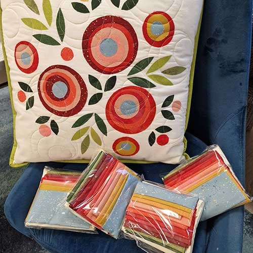 I pakken får du alle stoffene du trenger til å sy den lekre puta. Mønsteret finner du i Pillow Talk av Edyta Sitar.