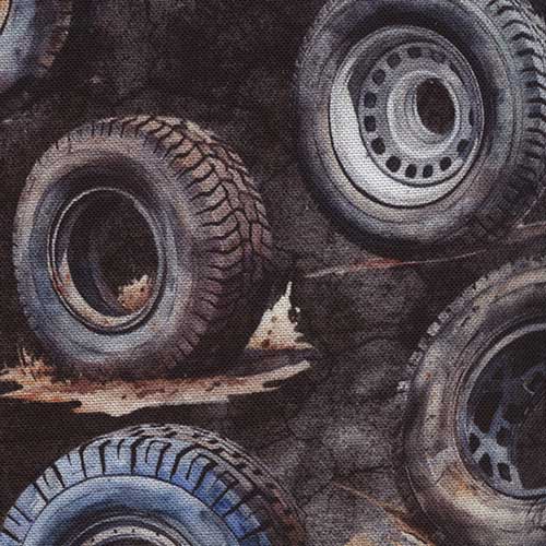 Et tøft stoff med dekk utover.