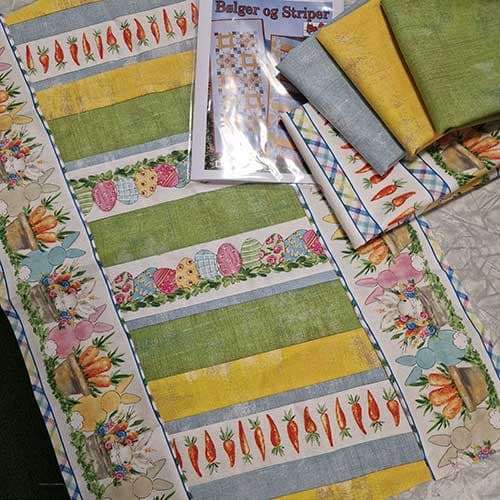 I pakken får du stoffer til å sy ein varaint av den lekre stripeløperen.