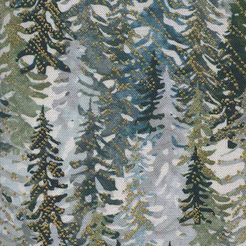 Eit herlig stoff med trær i kalde grønne toner.