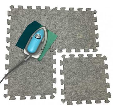 Press enkelt enhver sammensatt eller brodert blokk. Tettheten til denne høykvalitets 100 % tovede ullmatten lokaliserer varmen til sømmene og stingene, og presser effektivt begge sider samtidig. En ekstra bonus? Ullens tekstur hindrer stoffene i å forskyve seg, slik at det ikke blir noen vridning under pressing. Tips og triks For best resultat, bruk et tørt strykejern når du presser. Når du presser en brodert blokk, stryk den på vrangen. Ullmaten vil dempe stingene og beholde teksturen på broderidesignet. Hvis matten føles fuktig etter bruk, heng den opp for å lufttørke før du oppbevarer den. Vask matten av og til ved å skylle den i kaldt vann og heng den opp til den er tørr. Hvis du velger å bruke stivelse, vent med å presse stoffet til det er helt tørt. Stivelsesoppbygging kan svi matten hvis den ikke rengjøres ordentlig. Anbefalte overflater for ullmatten inkluderer Formica, Corian, stein og metall (et strykebrett). Bruk en beskyttende barriere som No-Stick Applique Sheet TGQ117 mellom tre eller malte overflater og ullmatten. Plasser aldri matten på en roterende skjærematte når du presser. Varmen kan deformere skjærematten.