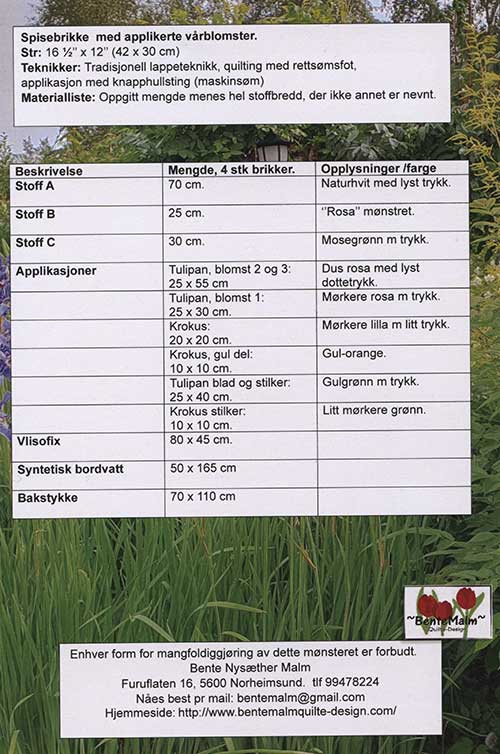 Mønster på herlige spisebrikker. Klikk under bildet for meir informasjon.